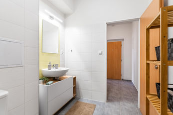 Byt v dobře dostupné části Prahy, kousek od O2 arény — přesně ten typ bytu, po kterém je na trhu největší poptávka. Nachází se ve 3. patře (4. NP) cihlového domu s výtahem. Dům má po rekonstrukci společné prostory a působí velmi udržovaně. Součástí je také klidný vnitroblok přístupný všem obyvatelům, ideální pro chvíle odpočinku mimo ruch ulice.