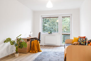 Byt se nachází ve 2. podlaží rekonstruovaného domu s novou fasádou i zateplením. Celková plocha bytu je 83 m², z čehož podlahová plocha s příslušenstvím činí 75 m², do které se počítá i sklep. Byt má dva zrekonstruované balkony o rozměru 4 m² a 4 m². V bytě se vytápí plynovým kombinovaným kotlem a plynem se i vaří, tudíž spotřebu máte pod svou kontrolou a radiátory jsou úplně nové. V bytě je optický internet.