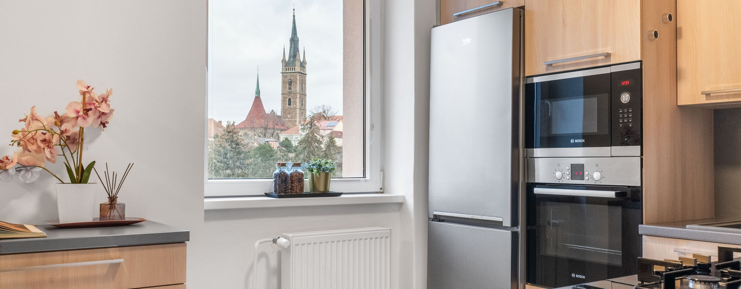 Nabízíme k prodeji světlý prostorný byt po rekonstrukci v oblíbené části Čáslavi. Předností bytu je krásný výhled na historické centrum z kuchyně. Kuchyně je moderní a je plně vybavena novějšími spotřebiči včetně myčky. Přes kuchyň se dostanete do menšího obývacího pokoje, ze kterého je vstup na jeden ze dvou balkonů, který je zasklený. Z předsíně bytu, kde je vestavěná skříň, můžete vejít nejen do zmíněné kuchyně, ale také do obou ložnic, které jsou vybavené postelemi, i dalším nábytkem.