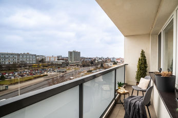 Byt 3+kk po nedávné rekonstrukci, který je krásně prosvětlený a navíc s výhledem z posledního patra. Podlahová plocha bytu je 69,7 m, ve kterých je započítána i komora na patře a sklep o velikosti 1,69 m2. Hezké výhledy si můžete vychutnat z prostorného balkonu bytu o výměře 6,96 m2.