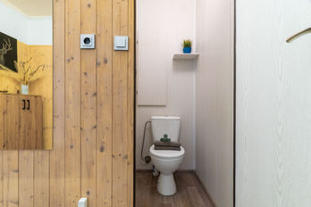 Při vstupu do bytu se dostaneme do prostorné předsíně s úložným prostorem a dalším místem, které je využívané jako spíž. Prostorný obývací pokoj s klimatizací je propojený s moderním kuchyňským koutem. Součástí kuchyňského koutu je vestavěná myčka, trouba, sklokeramická deska a mikrovlnná trouba. Dále se v bytě nachází dvě ložnice, kdy v jedné z nich je i šatna. Ložnice orientované na východ a obývací pokoj s kuchyní orientovaný na západ zajišťují celodenní přísun světla.