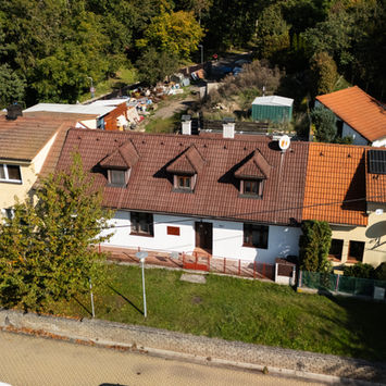 Žebrák – místo, kde se snoubí historie s přírodou. Příjemné městečko s přibližně dvěma tisíci obyvateli leží v podhůří Křivoklátských lesů a v dohledu ikonických hradů Točník a Žebrák. Díky poloze u dálnice D5 je výborně dostupné – autem jste v Praze i Plzni za půl hodiny. Samotný dům stojí v klidné části města, v prostředí chráněné krajinné oblasti Křivoklátsko, která zaručuje čistou přírodu a jistotu, že okolí zůstane zachováno bez velkých developerských zásahů.